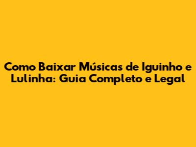 Como Baixar Músicas De Iguinho E Lulinha: Guia Completo E Legal