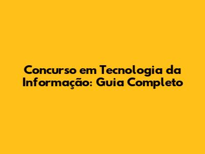 Concurso Em Tecnologia Da Informação: Guia Completo
