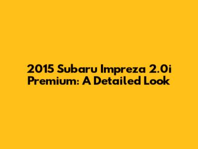 Hey guys! Let's dive deep into the 2015 Subaru Impreza 2.0i Premium. This car isn't just a ride; it's a statement. It's about reliability, safety, and a touch of class, all rolled into one neat package. Whether you're a seasoned Subaru enthusiast or just curious about what this model has to offer, you're in the right place. We're going to explore everything from its performance and features to its overall value. So, buckle up and get ready for an informative and engaging journey!