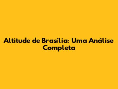 Altitude De Brasília: Uma Análise Completa
