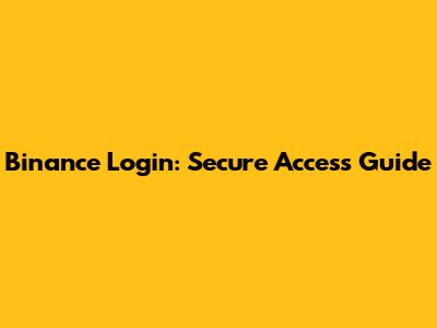 Binance Login: Secure Access Guide