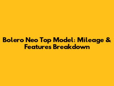 Bolero Neo Top Model: Mileage & Features Breakdown