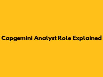Capgemini Analyst Role Explained