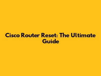 Cisco Router Reset: The Ultimate Guide