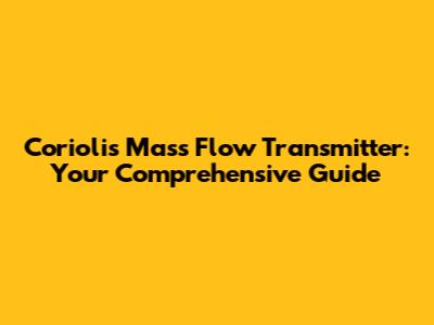 Coriolis Mass Flow Transmitter: Ultimate Guide