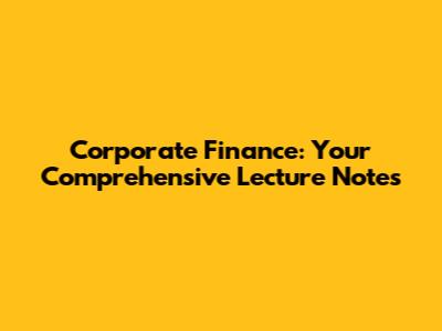 Corporate Finance: Your Comprehensive Lecture Notes