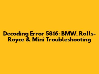 Decoding Error 5816: BMW, Rolls-Royce & Mini Troubleshooting