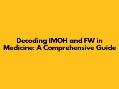 Decoding IMOH And FW In Medicine: A Comprehensive Guide