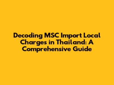 Decoding MSC Import Local Charges In Thailand: A Comprehensive Guide