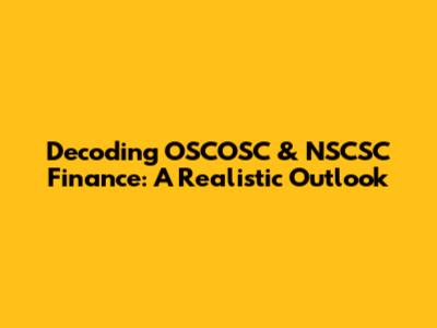 Decoding OSCOSC & NSCSC Finance: A Realistic Outlook