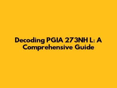 Decoding PGIA 273NH L: A Comprehensive Guide