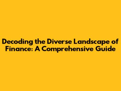 Decoding The Diverse Landscape Of Finance: A Comprehensive Guide