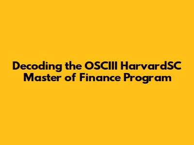 Decoding The OSCIII HarvardSC Master Of Finance Program