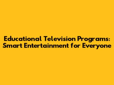 Educational TV: Smart Entertainment For Everyone