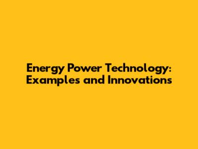 Energy Power Technology: Examples And Innovations