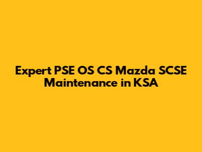 Expert PSE OS CS Mazda SCSE Maintenance In KSA