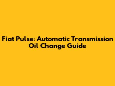 Step-by-Step Guide: Changing the Automatic Transmission Oil on Your Fiat Pulse