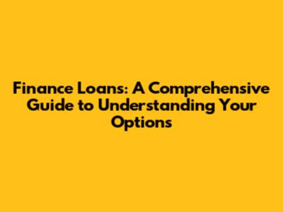 Finance Loans: A Comprehensive Guide To Understanding Your Options