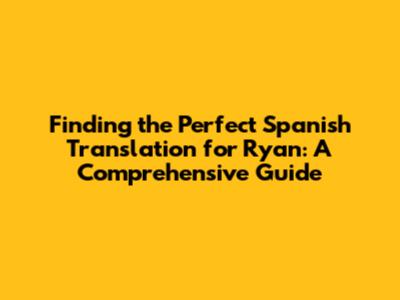 Finding The Perfect Spanish Translation For Ryan: A Comprehensive Guide