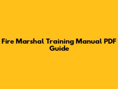 Fire Marshal Training Manual PDF Guide