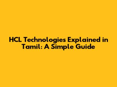HCL Technologies Explained In Tamil: A Simple Guide
