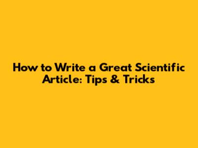 How To Write A Great Scientific Article: Tips & Tricks