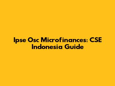 Ipse Osc Microfinances: CSE Indonesia Guide