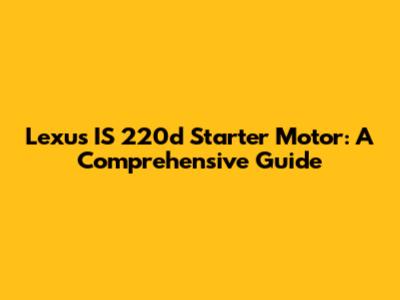 Lexus IS 220d Starter Motor: A Comprehensive Guide
