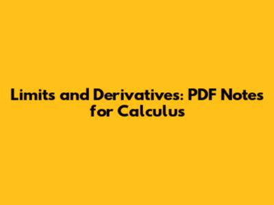 Limits And Derivatives: PDF Notes For Calculus