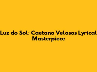 Luz Do Sol: Caetano Veloso's Lyrical Masterpiece