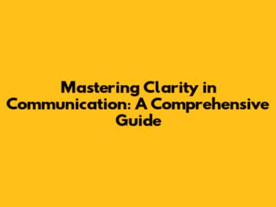 Mastering Clarity In Communication: A Comprehensive Guide
