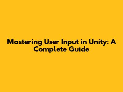 Mastering User Input In Unity: A Complete Guide