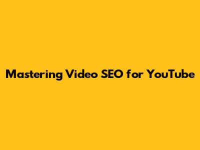 Mastering Video SEO For YouTube
