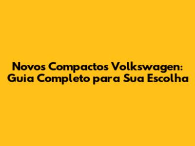 Novos Compactos Volkswagen: Guia Completo Para Sua Escolha