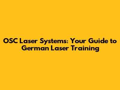 OSC Laser Systems: Your Guide To German Laser Training