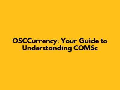 OSCCurrency: The Ultimate Guide To Understanding COMSc