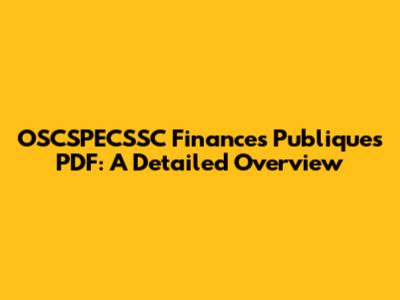 OSCSPECSSC Finances Publiques PDF: A Detailed Overview
