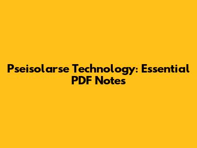 Pseisolarse Technology: Essential PDF Notes