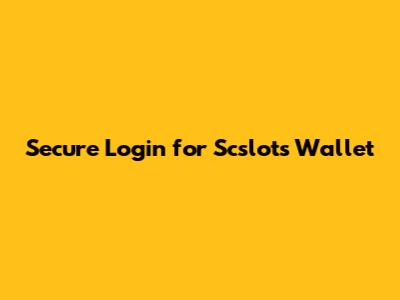 Secure Login For Scslots Wallet