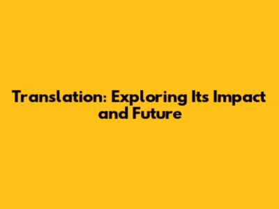 Translation: Exploring Its Impact And Future