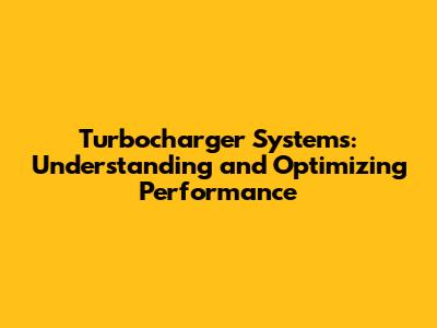 Turbocharger Systems: Understanding And Optimizing Performance