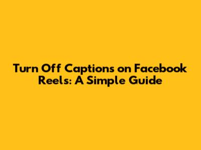 Turn Off Captions On Facebook Reels: A Simple Guide