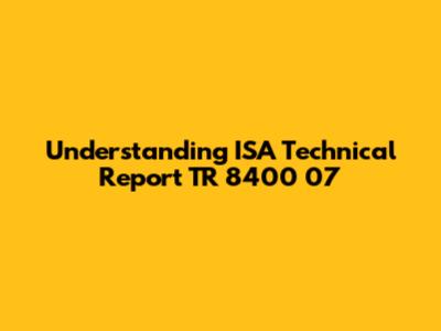 Understanding ISA Technical Report TR 8400 07