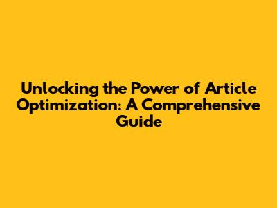 Unlocking The Power Of Article Optimization: A Comprehensive Guide