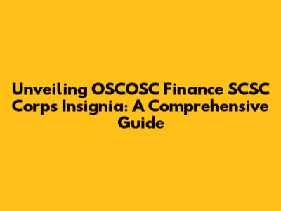 Unveiling OSCOSC Finance SCSC Corps Insignia: A Comprehensive Guide